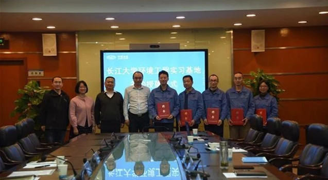 "环境工程实习基地"授牌。学院副院长吴爱斌、环工系主任魏平方、水务集团总经理助理曾兵等共同参加此次活动。