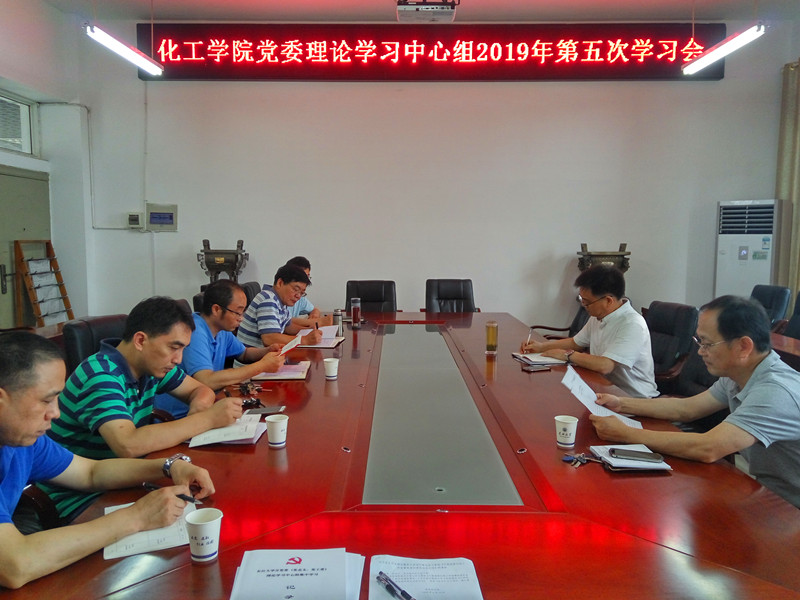 6月19日上午,化工院党委理论学习中心组(扩大)在303会议室开展了2019年度第五次集中学习,学院党委委员参加了本次学习,学习会由学院党委书记刘桂生主持。