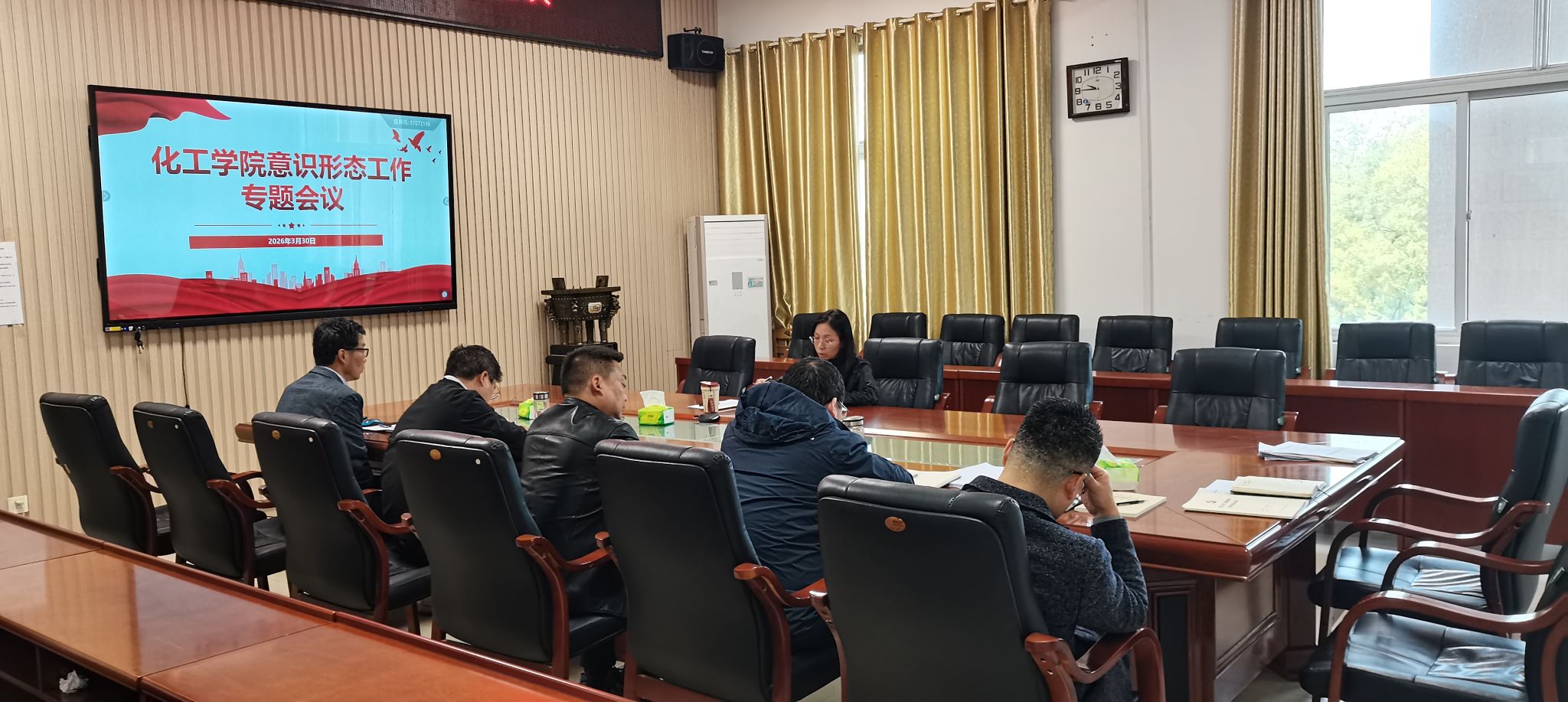 为深入贯彻落实意识形态工作责任制,切实筑牢思想防线,3月30日上午,学院在14教西303会议室召开2026年春季学期意识形态工作专题会议,系统部署本学期意识形态重点工作,压紧压实工作责任。会议由学院党委书记王丽主持,学院领导班子成员参会。
