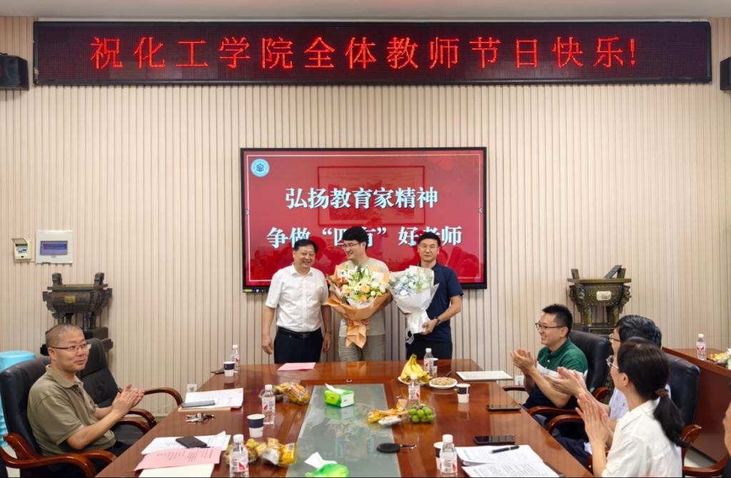 副院长吴爱斌、副书记杨会军为新入职教师赠送教师节礼物
