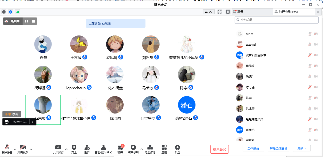 18级考研经验分享会。本次会议由辅导员王娜老师主持,石东坡教授参会,18级考研学生代表钟建铭、周慧慧、赵河营、张静、解妍分享考研经验,学院19级、20级同学线上聆听。