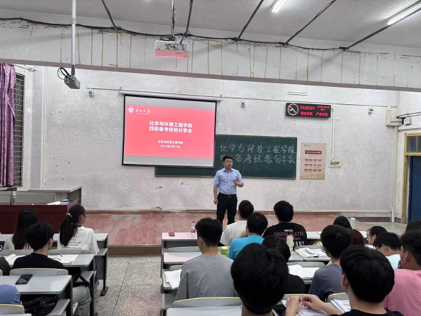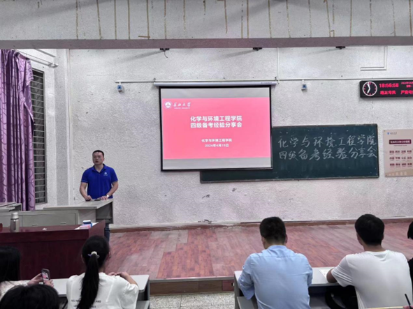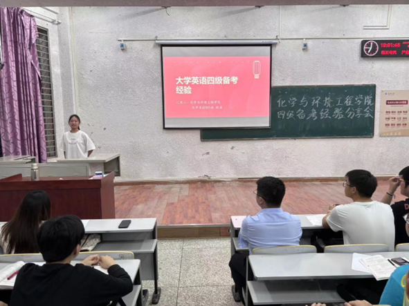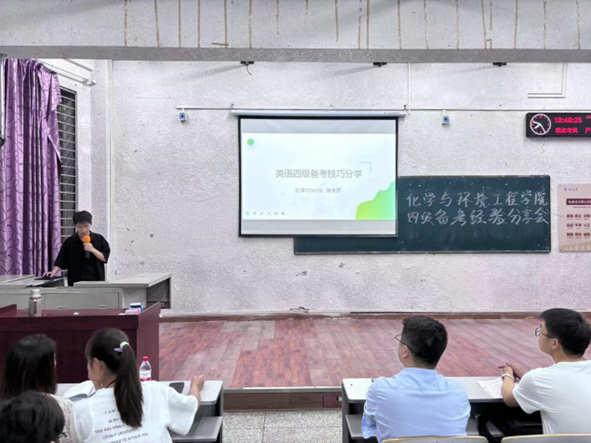 于4月15日在西校区5教203教室开展英语四级备考经验分享会,学院党委副书记杨会军、辅导员蔡略老师和大一学生参加此次活动。