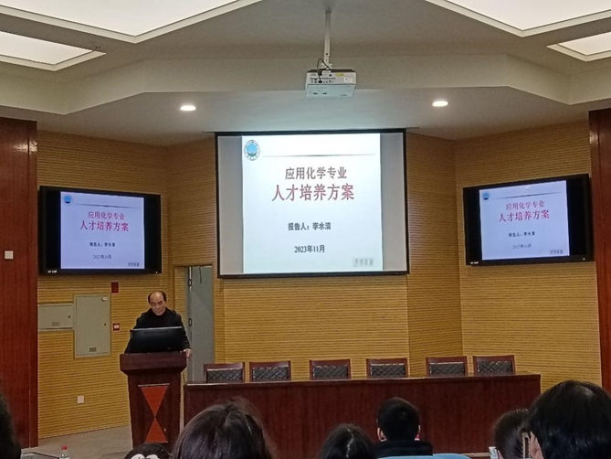 应化系主任李水清老师介绍了应用化学的发展方向、培养目标等,指明应化系广阔的就业前景。他强调,应用化学专业实验仪器完备、师资力量雄厚、未来发展势头良好,希望同学们在讲解之后对应用化学有了更深入的了解,也对自己的职业规划有了更清晰的思路。