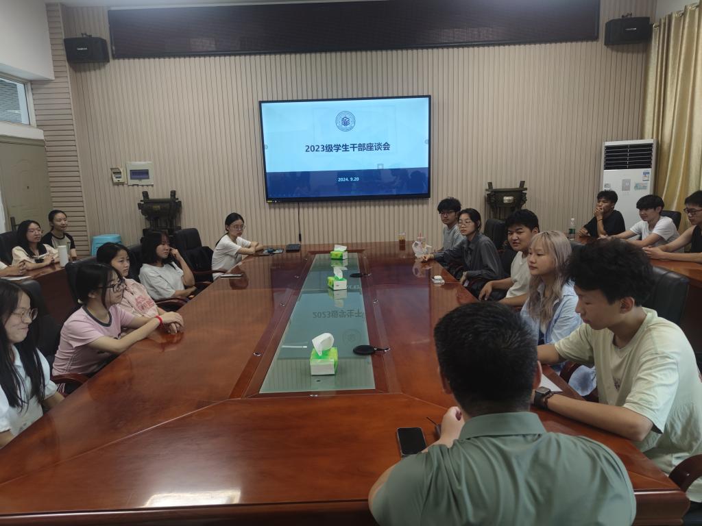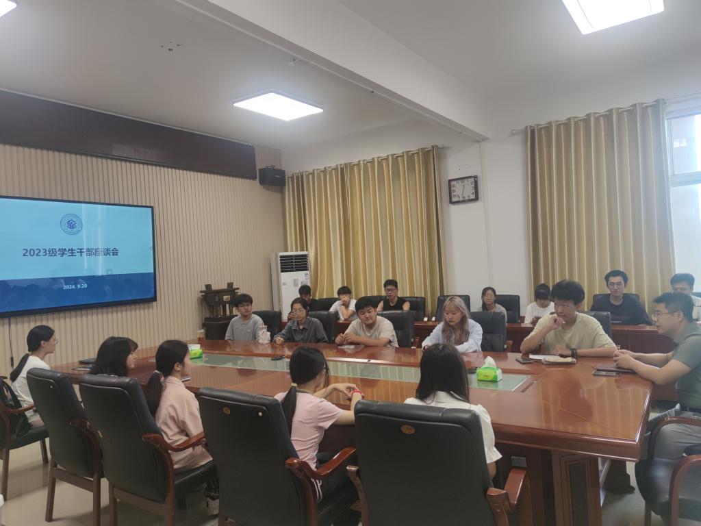 于9月20日中午12:30在14教西303召开2023级本科生学生干部座谈会,学院党委副书记杨会军、2023级辅导员王娜、2023级各班班长和学习委员参加此次会议。
