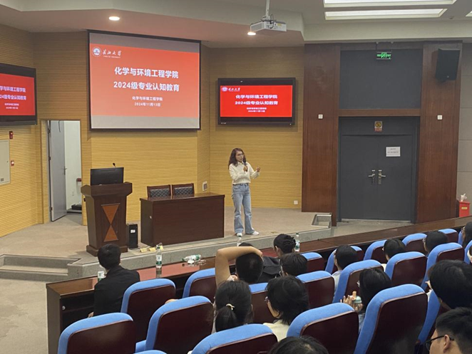 应化系主任李水清老师介绍了应用化学的发展方向、人才培养方案等,指明应化系广阔的就业前景,我院应用化学专业实验仪器完备、师资力量雄厚、未来发展势头良好,希望同学们在讲解之后对应用化学有更深入的了解,同时也对自己的职业规划有更清晰的思路。张颖老师介绍了自己现阶段的科研项目,并结合产业需求和专业人才培养实际,勉励同学们成为创新型人才。