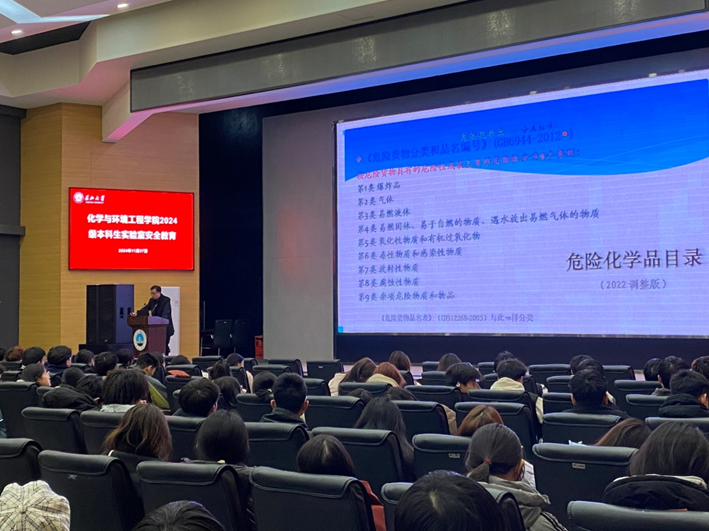 于11月27日晚上在西校区农科大楼1058号学术报告厅为2024级本科生开展了一场实验室安全教育讲座。此次讲座由院长助理、实验室中心主任黄河老师主讲,辅导员蔡略老师、2024级全体本科生参加了活动。