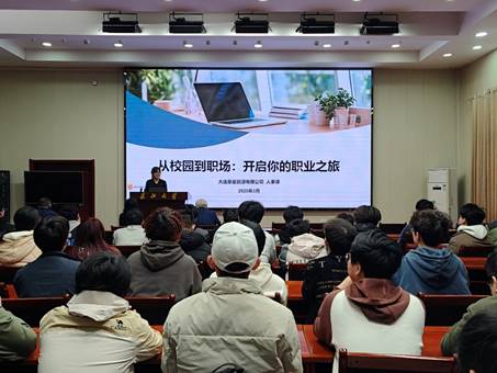 邵巧主任以《从校园到职场:开启你的职业之旅》为题分享经验。她介绍了公司发展优势、历程、人才理念、韩国无码,并结合自身经历,通过生动案例深入剖析学生与职场人的差异,深度解读Vuca时代和热门行业发展趋势,说明行业对复合型、创新型人才的需求。最后,邵巧主任分享了通往成功的五个秘籍,并深入讲解职业规划的重要性与实施步骤,鼓励要同学们在行动中成长,在担责中进步。