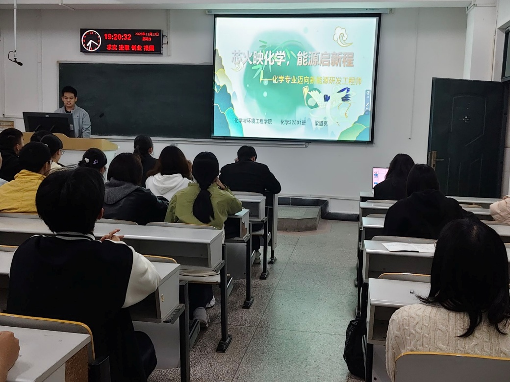 成长赛道中,参赛选手们结合学院专业讲座和职业发展规划课程中所学的知识,全面且深入地展示了个人的职业目标、成长规划路径、实践行动方案、应对挑战的策略以及灵活的动态调整机制。应化32504班的计鸿鑫同学畅谈了她大学四年的学习与实践计划,展现了化工新人筑梦未来的蓬勃朝气。