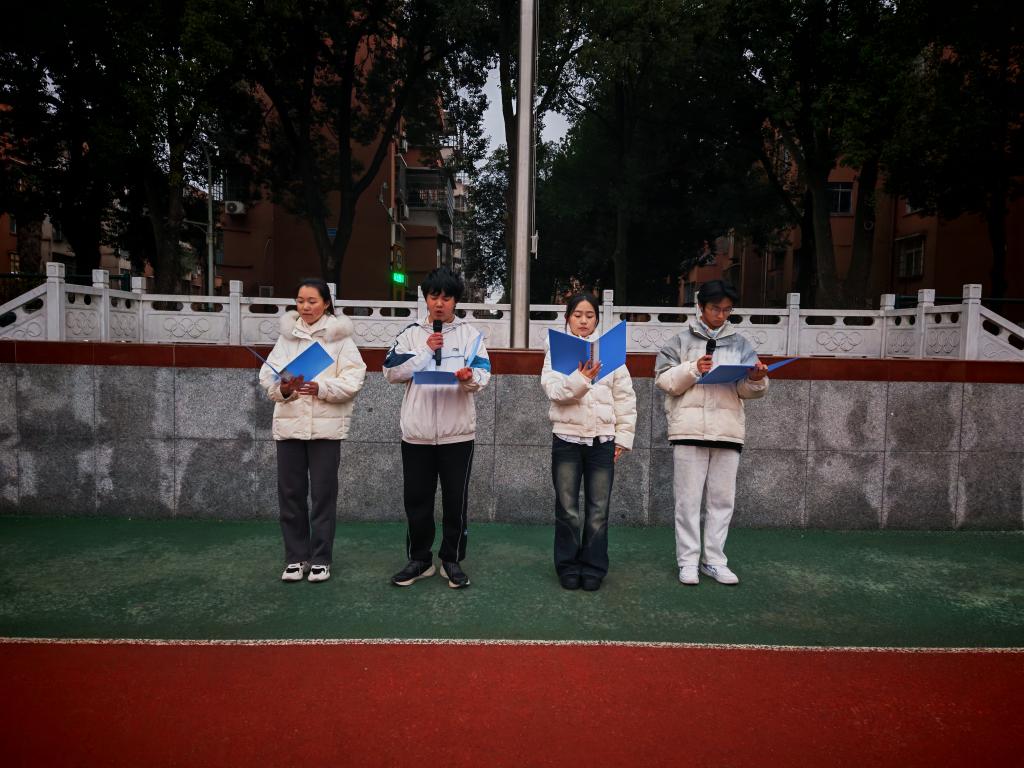升旗礼毕,应化32504班张健禹同学作题为《以学正风,以行致远》的国旗下演讲。他从历代先贤严谨治学的精神谈起,结合新时代青年的责任与使命,深刻阐释了优良学风作为校园文化之魂、成长成才之基的重要意义。面对即将到来的期末考试,他倡议同学们端正学习态度、坚守诚信底线、互帮互助共进,将个人理想融入国家发展伟业,努力成长为堪当民族复兴重任的时代新人。