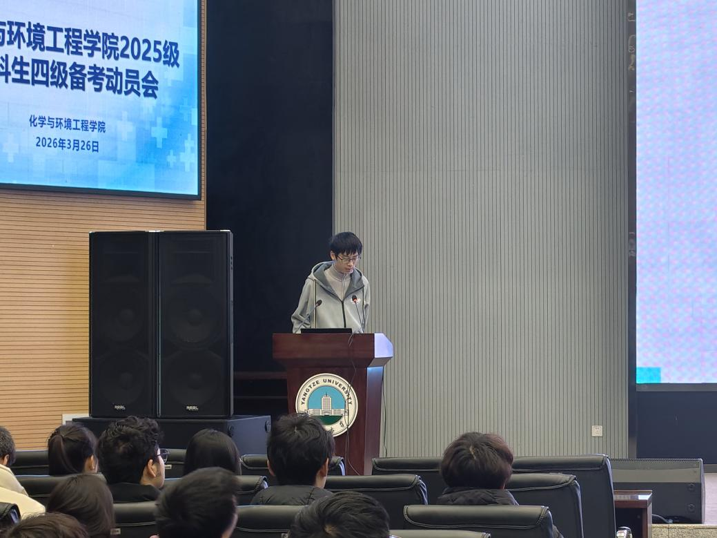 在西校区农科楼1058报告厅召开四级备考动员大会。学院党委副书记杨会军、辅导员徐茵出席会议,2025级备考四级本科生参会。大会邀请三位来自发展班、在四级考试中取得不同分数段的学生代表分享备考经验。