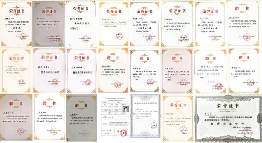 在各类赛事竞技中,班级学子更是屡创佳绩。在2025年中国国际大学生创新大赛湖北省复赛中斩获省铜奖;在湖北省第十八届大学生化学(化工)学术创新成果报告会上,荣获省二等奖;在荆州市2025年“创响荆州・建功支点”创新创业大赛大学生创业赛道复赛中,成功突破重围晋级决赛。