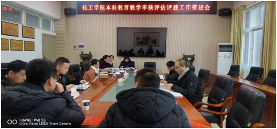 本科教育教学审核评估评建工作推进会。学院党委书记王丽、院长颜学敏、院办、教学办、学工办、实验中心和各专业系主任、副主任参加会议,会议由副院长吴爱斌主持。