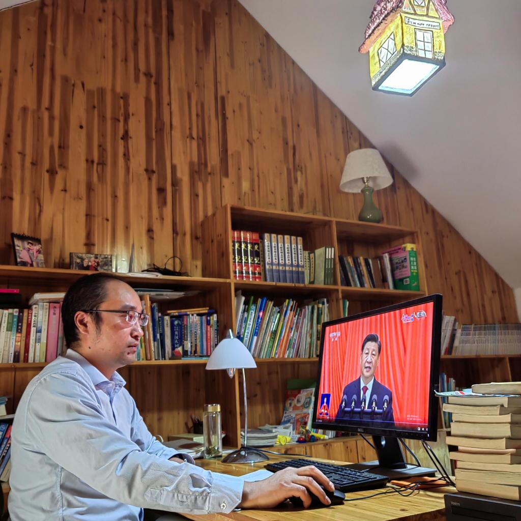 教授陈武观看二十大开幕直播