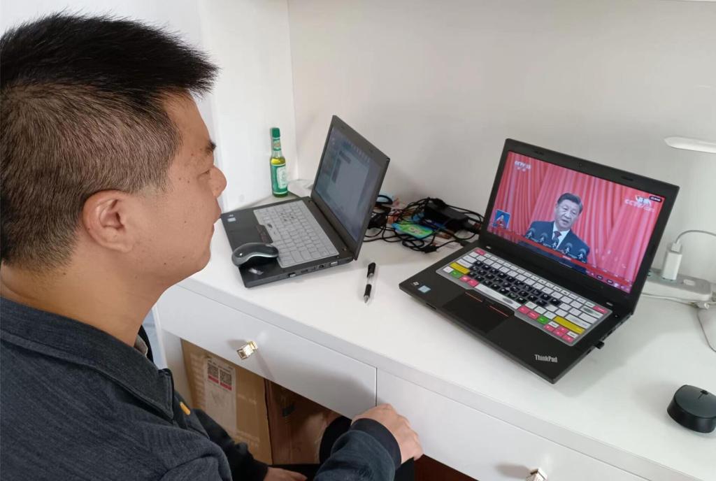 副教授魏平方观看二十大开幕直播