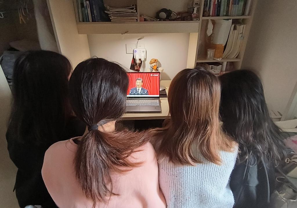 化工12001班陈启燕与室友一起观看二十大开幕直播