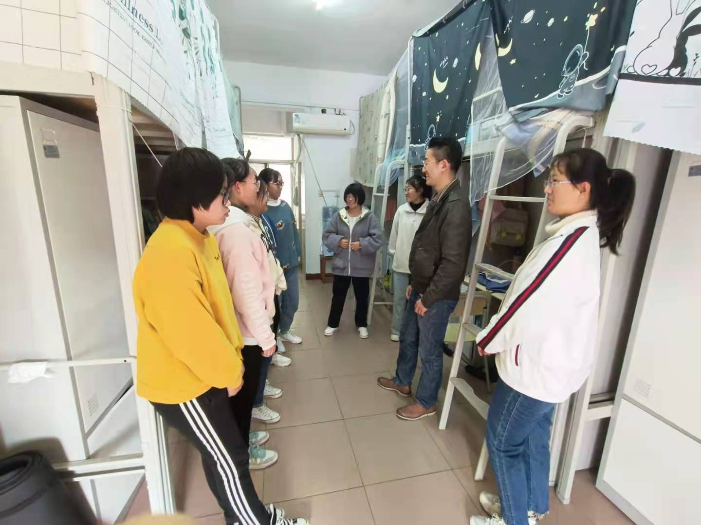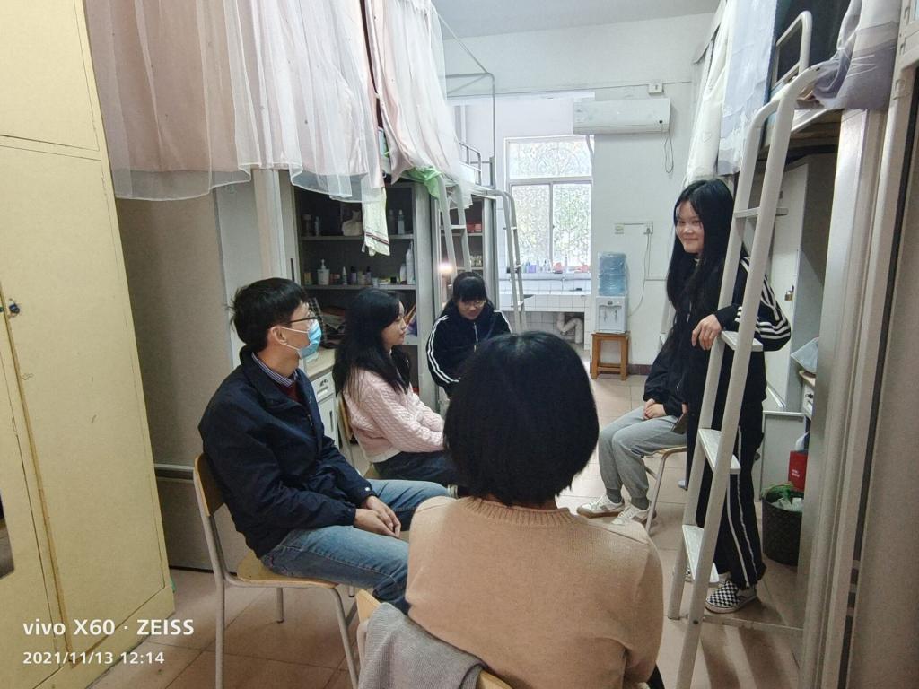 其次,开展生涯规划个性咨询。从10月份开始,学院组织21级新生班主任、辅导员进寝室、进教室,对学生大学生活、学业等方面进行指导。班主任们通过侧面了解和面对面谈心的方式,帮助新生树立正确的价值观、职业观,做好职业生涯规划。