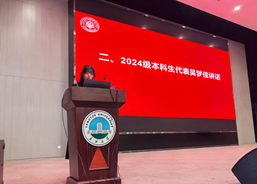 开学典礼在庄严的国歌声中缓缓展开。随后,2024级本科新生吴梦佳作为学生代表发言,她说,步入大学生活,就要快速调整心态,合理运用空闲时间,提升自我能力,明确前进目标,不忘初心,砥砺前行。