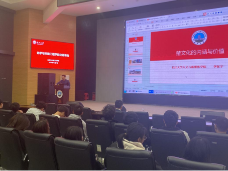 化雨讲坛2024年第二讲——楚文化的内涵与价值讲座。此次讲座由人文与新媒体学院副院长、李征宇教授主讲,学院党委副书记杨会军主持,2024级全体本科生参加。