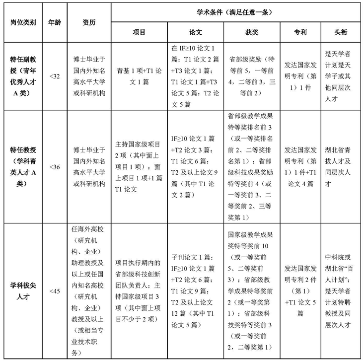 1、引进人才全面享受国家、湖北省和学校相关计划(项目)配套支持优惠政策,符合条件者可依托学校申报国家、湖北省人才项目,申领楚才卡,享受政务、金融、安居、医疗、交通等方面优质服务,包括购房支持、特约医疗、绿色通道、免旅游门票等。