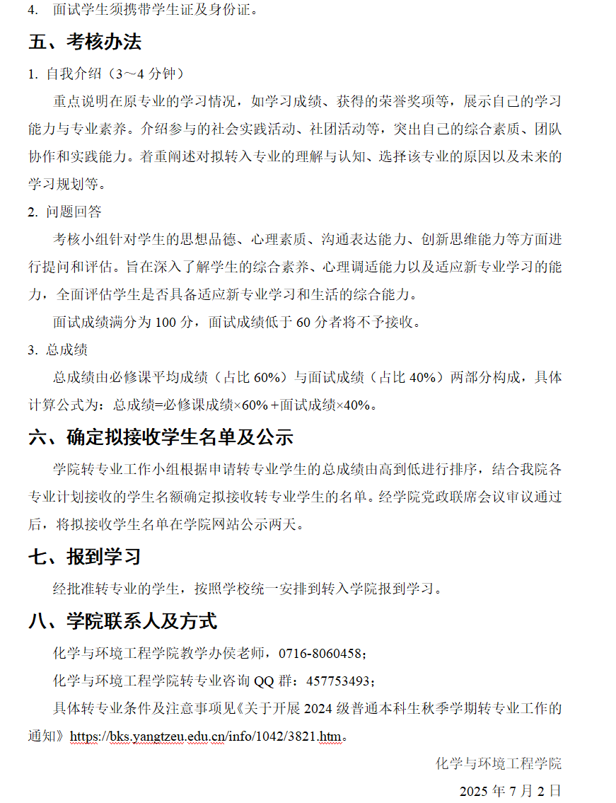 韩国无码 2024级普通本科生秋季学期转专业考核方案