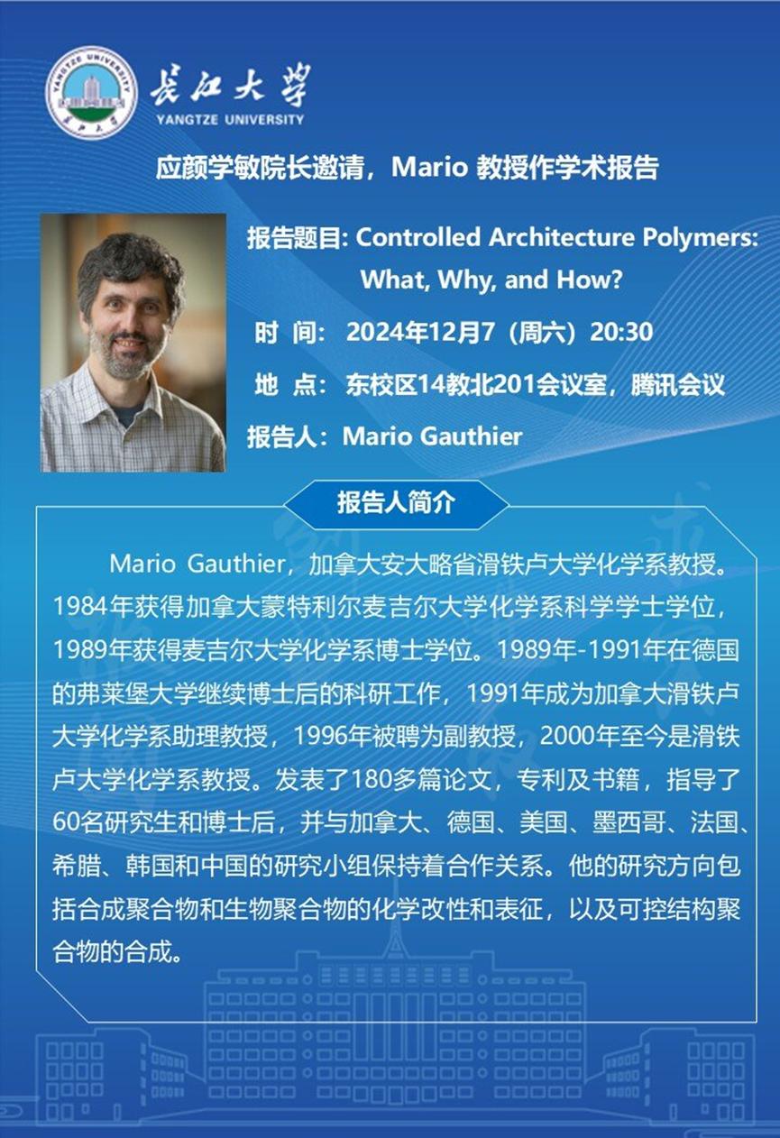长江化工讲坛:Controlled Architecture Polymers: What, Why, and How?