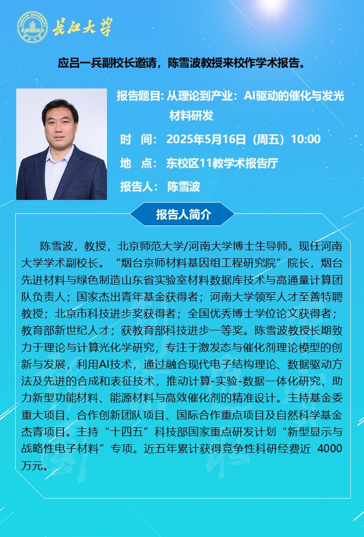 长江化工讲坛:从理论到产业:AI驱动的催化与发光材料研发