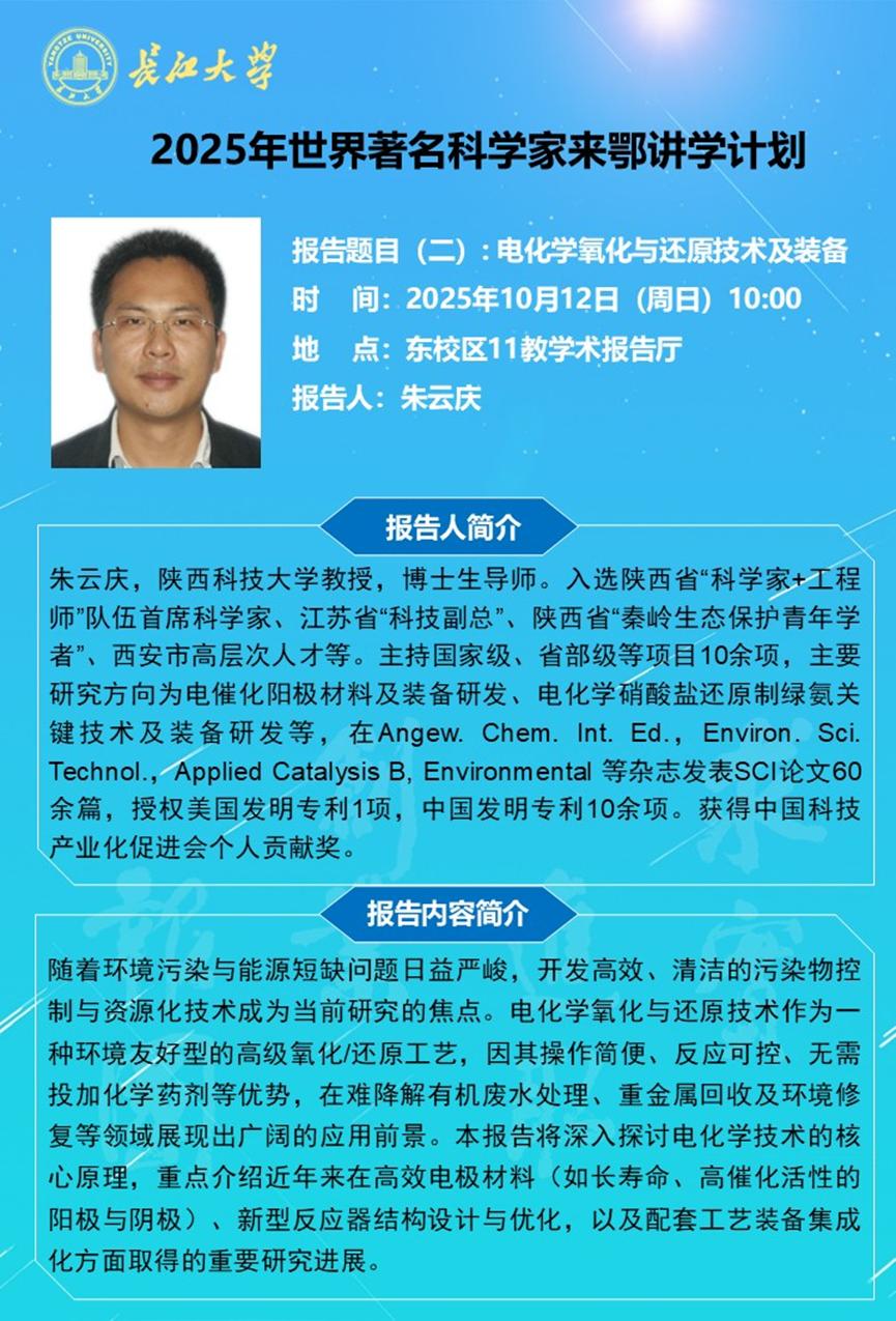 长江化工讲坛:电化学氧化与还原技术及装备