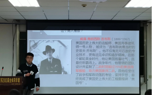 在鳞次栉比的读物分享中,不仅包含了古今中外的名著,还有享誉世界的电影,源远流长的纪录片以及极富乐趣和个性的小说。《一个男人和他的船》、《绿皮书》、《当幸福来敲门》、《人生第一次》《自行车之歌》……同学们以自己的读书感悟为素材,结合相关资料,运用精美的PPT,以演讲的形式,解读了爱、自由、坚韧和伟大。同时,更表达了身为当代大学生对黑暗、死亡、平庸以及勿忘国耻的思考。