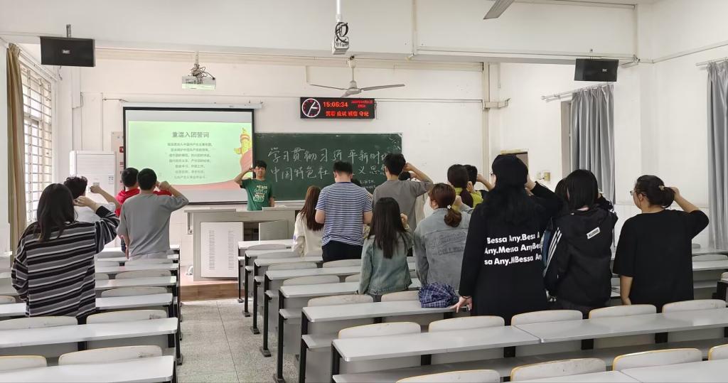 团委学生会组织部部长王领主持,并且邀请到了王陈老师和周学素老师来为大家进行讲解。本次采取集中学习和自学相结合的方式,组织全体团员重点学习贯彻习近平新时代中国特色社会主义思想主题教育工作会议内容。加强了同学们的创新理论武装、马克思主义水平,为奋进新征程凝心聚力。开展了集中入团仪式。组织团员重温入团誓词,增强了共青团员的先进性和荣誉感。在第八个全民国家安全教育日期间,开展“总体国家安全观”宣传教育活动。学习弘扬伟大建党精神,弘扬延安精神,发扬斗争精神。学习人民日报文章《牢牢把握团结奋斗的时代要求》。坚持发扬斗争精神,为团结奋斗激发精神动力。会议期间邀请优秀青年代表进行学习贯彻党的二十大精神宣讲工作,用网络新媒体加强二次传播,营造了浓厚氛围;邀请优秀团干分享交流成长体会、感悟入团初心,教育引导团员学习先进、争当先进。